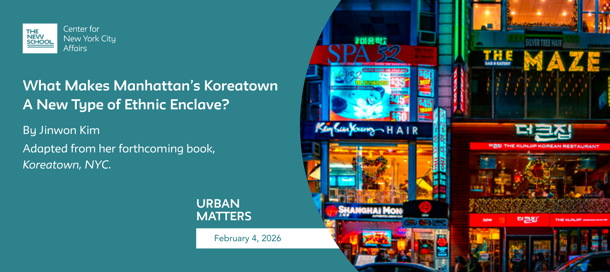 Jinwon Kim is an assistant professor of sociology at Smith College and the author of Koreatown, NYC: The Consumption of a Transnational Brand, which will be published by New York University Press in May, 2026. This lightly edited adaptation excerpted from its introduction appears here with the permission of the author and publisher.